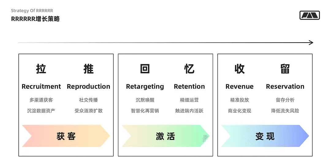 在外部投放端,業(yè)務也就具備更多的測試空間和發(fā)展規(guī)模,釋放出更多了投放預算。嘗試通過對存量用戶的行為洞察和運營,對產品優(yōu)化迭代,幫助支撐前端增長有更多的投放支持和營銷預算。
