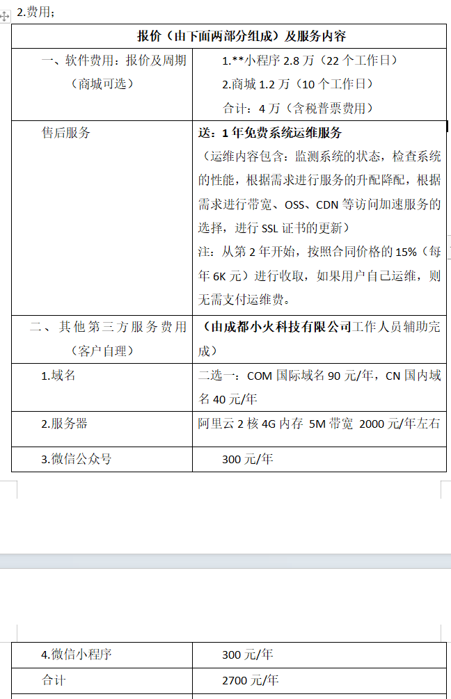 那么,如果我想定制開發(fā)一個(gè)小程序,需要多少錢呢?可以參考成都小火科技公司(TEL:19113551853)的報(bào)價(jià)。下面是一個(gè)物聯(lián)網(wǎng)小程序,甲方想加入硬件設(shè)備,實(shí)現(xiàn)小程序的控制操作,也想通過商城來售賣附屬產(chǎn)品。針對(duì)甲方的實(shí)際情況,我們把物聯(lián)網(wǎng)和商城的功能分開報(bào)價(jià)。小程序物聯(lián)網(wǎng)部分22個(gè)工作日,報(bào)價(jià)2.8萬元。商城1.2萬元,包含定制的功能。