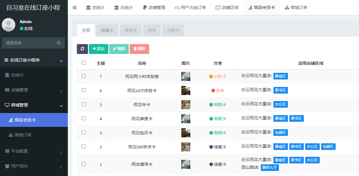 會員卡商城和后臺統(tǒng)計功能的引入,則是自習室對科技手段的深度運用。會員卡商城讓用戶能夠方便地購買會員卡,而后臺統(tǒng)計功能則讓管理者能夠對店面的運營數(shù)據(jù)有清晰的了解,這有助于提高管理效率和用戶滿意度。