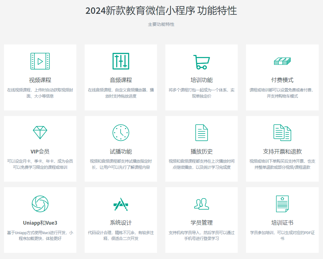 結(jié)合教育行業(yè)的實(shí)際情況,也為了滿足廣大師生的需求,成都小火科技公司推薦一款功能全面的教育培訓(xùn)微信小程序,為繼續(xù)教育、企業(yè)培訓(xùn)、考試學(xué)習(xí)等場(chǎng)景提供一站式音視頻學(xué)習(xí)平臺(tái)。這款小程序不僅支持課程購(gòu)買、會(huì)員充值等在線付費(fèi)學(xué)習(xí)方式,還具備培訓(xùn)證書的生成與查證功能。下面,讓我們一起來(lái)詳細(xì)了解這款小程序的主要功能。